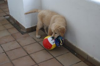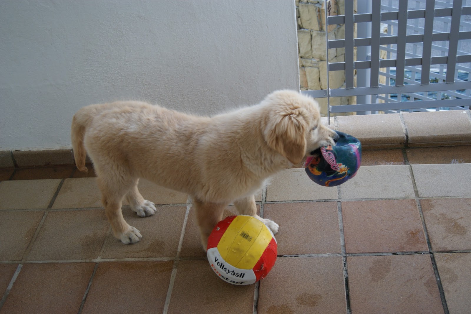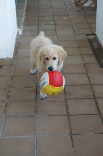 A kutyát különösebben nem zavarta játékának térfogat és alakváltozása, továbbra is szeretgette a királylányt, és hurcolta a labdamaradványt, amire igy már könnyedén rá is tudott harapni. Ugyanakkor úgy gondoltuk, hogy nem árt a háztartásban egy RENDES labda, mert egyrészt azzal lehet focizni, dobálgatni, meg guritani a négylábúnak, másrészt a Vőlegényt csöppecskét frusztrálta, hogy imádott FIÚkutyája királylányos labdával korzózik.
