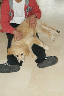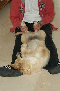 Be kell vallanom, kitartó jószág, mert csak estére sikerült nagyjából megbékiteni. Akkor katapultált teljesen, amikor a Kedves lement az ő szintjére és hagyta, hogy rajta hédereljen. A padlólamour aztán sajátságos jógagyakorlatba torkollott Artur részéről, súlya miatt viszont csóri Vőlegénynek egy erőnléti edzéssel ért fel. De a kutya nagyon élvezte a talpmasszást, a nyújtásokat, és a gerinccsavarást, hátonfekvés közben. Bevallom, miközben néztem, irigykedtem kicsit a hajlékonysága miatt. Két éve jógázom, több-kevesebb sikerrel. Magát a műfajt imádom, de hogy mikor kerülök olyan szintre, mint az eb? Valószinűleg sosem, és az önbizalmamnak nem tesz kifejezetten jót, hogy a 4 hónapos, túlsúlyos családtagunk lealáz e téren. Mondjuk én ritkán bújok be a szekrény alá, és fésülködéskor sem kell legalább hármat tekerni a gerincoszlopomon, ellenállás végett, igy meglehet, hogy ennyire gumitestre nincs is szükségem. Mindenesetre az ebet hajtogatjuk, mert szereti és megnyugtatja, de csak akkor, ha a hátán heverészik közben. Igy délelőttönként a nappalinkban kutyaHÁTha jógát tartok, és utána van egy endorfinban úszó izmos kis szőrgombócunk, aki viszonylag nyugodtan nézi végig, mig én is teljesitem az egy órás strechinget, öngyötrés céljából.
