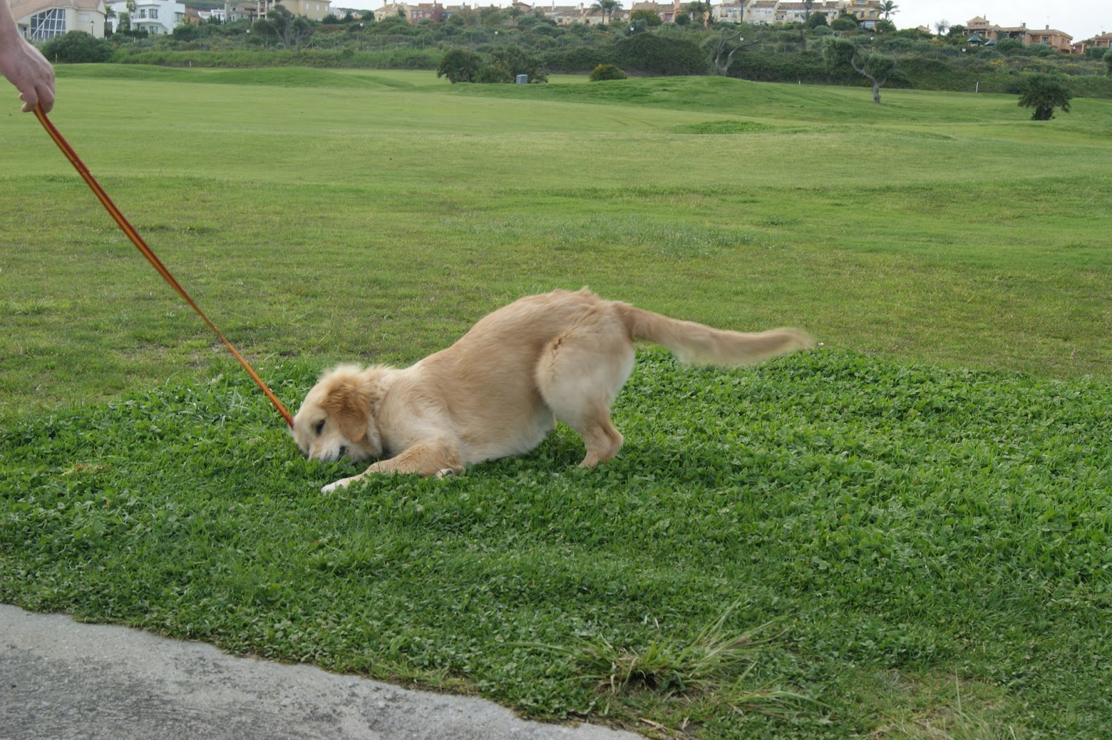 A méreg az egészben az, hogyha nincsen pórázon, akkor szinte mintaszerűen jön mellettünk, és egészen normális kutyának tűnik. De ez a póráztalanság egyelőre kockázatos, mert még nem 100 %-osan szófogadó, és az embeszeretete, meg a rigó és macskakergetési mániája esetenként felülirja a parancsunkat. Azaz, csak olyan helyen tudjuk nyugodtan elengedni, ahol nem szaladhat autó alá, illetve nem ugrálhat rá gyanútlan humanoidokra. Küzdünk hát erősen, egyelőre csekély eredményekkel.