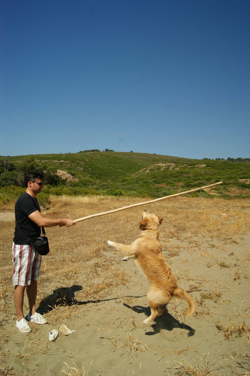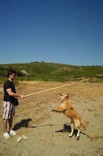 A hétvégi kirándulás során felismertük, hogy az eb kiemelkedően jó – az általam mindig rettenetesen utált- magasugrásban is. Erre a képességére tök véletlenül derült fény, mikor is a -néha- cseppecskét infantilis Vőlegény, egy kurva hosszú bambusszal épp lovaggá akarta ütni a kutyát a hegy tetején… (igen, én is nagyon röhögtem)